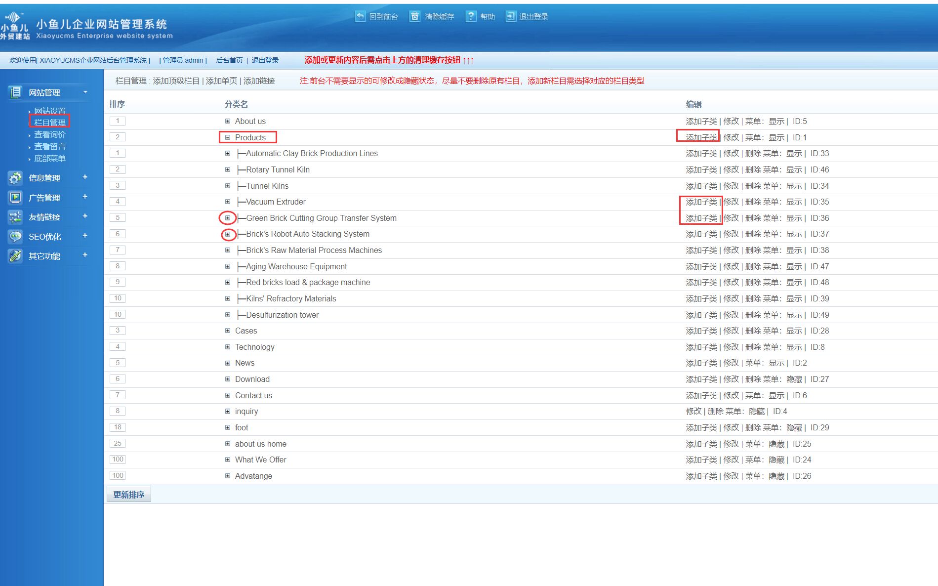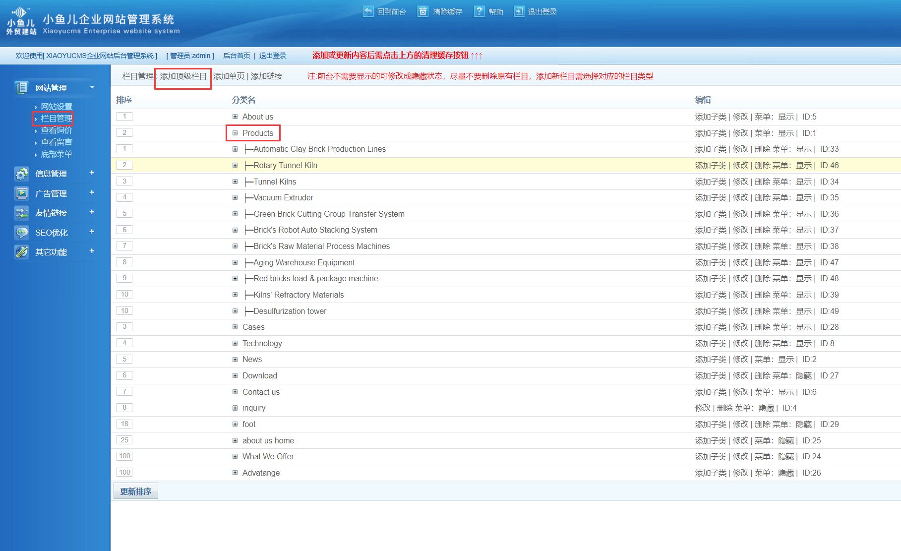 顶级、二级栏目显示在导航栏,二级、三级栏目显示在内页左侧栏。