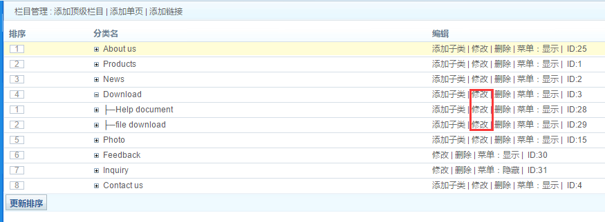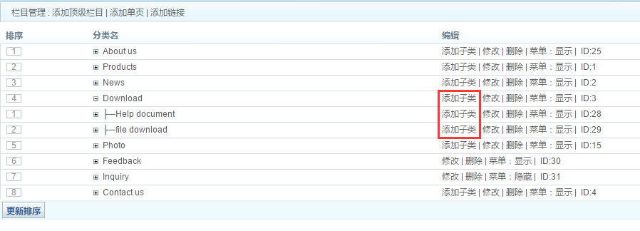 在顶级栏目中添加子类。如想添加三级菜单,即在二级菜单后添加子类。