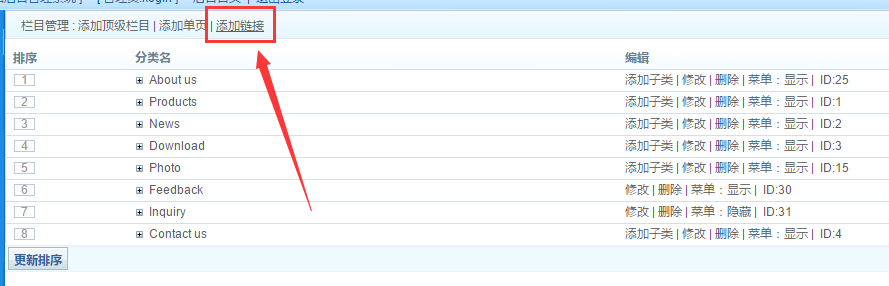链接模型:即添加链接的栏目模型,比如Feedback、Inquiry栏目