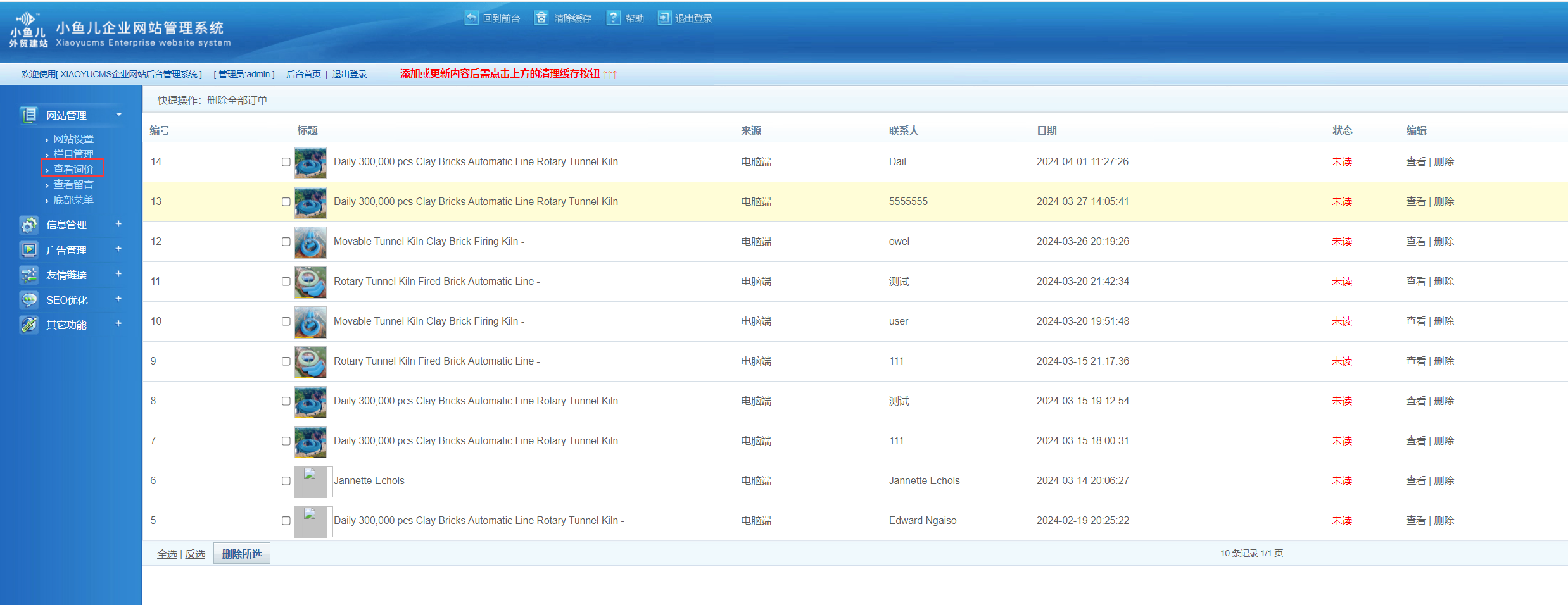 订单管理:在前台提交订单后,用户可在后台查看订单内容。
