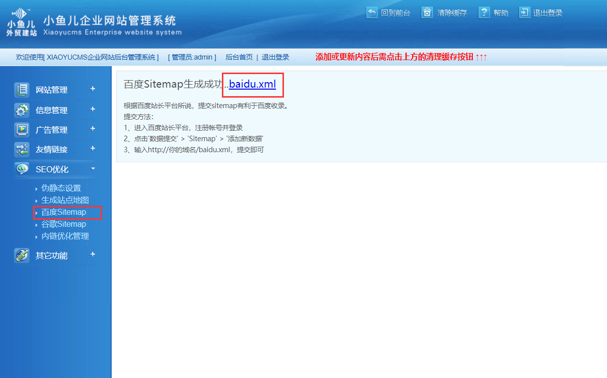 在后台点击 百度sitemap ,即可生成百度sitemap