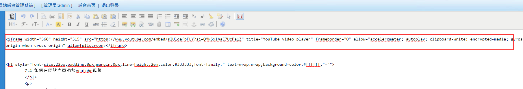其中为 width="560" height="315" 视频的宽高,可自由定义